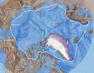 Da Børge Ousland og Thorleif Thorleifsson klappet til kai ute ved FRAM-museet den 22. oktober i fjor, ble de ikke bare ønsket velkommen av 150 entusiastiske fremmøtte, men også av to representanter for Travellers’ Club. Å seile gjennom både nordøstpassasjen og nordvestpassasjen - på en sesong - hadde Børge og Thorleif gjennomført med glans. Som de aller første i verdenshistorien. Vi stiller oss i rekken av gratulanter, og er glade for at våre medlemmer Sverre Kræmer og Per Steffensen (som tok med fanen) var tilstede ved denne anledningen.Det er ingen liten bragd disse gutta har gjennomført. I en bitteliten 31 fots trimaran, med en beskjeden 10 HK motor har de kjempet seg gjennom de ugjestmilde områdene rundt Grønland og Nordpolen.